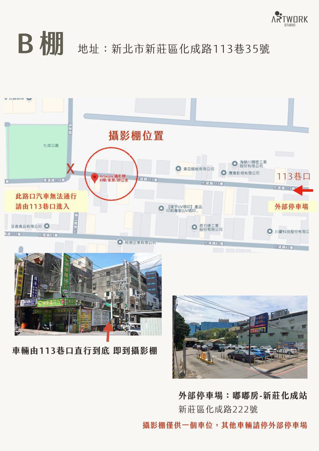 汽車需由化成路111號(檳榔攤旁邊的113巷巷口)進來,沿指標停至B1指定車位,勿停其他車格,停車場限高2.1m